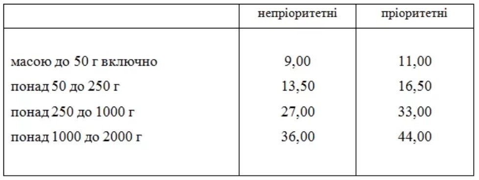 Предельные тарифы на письма, почтовые карточки без НДС, грн с 1 января 2020 года.