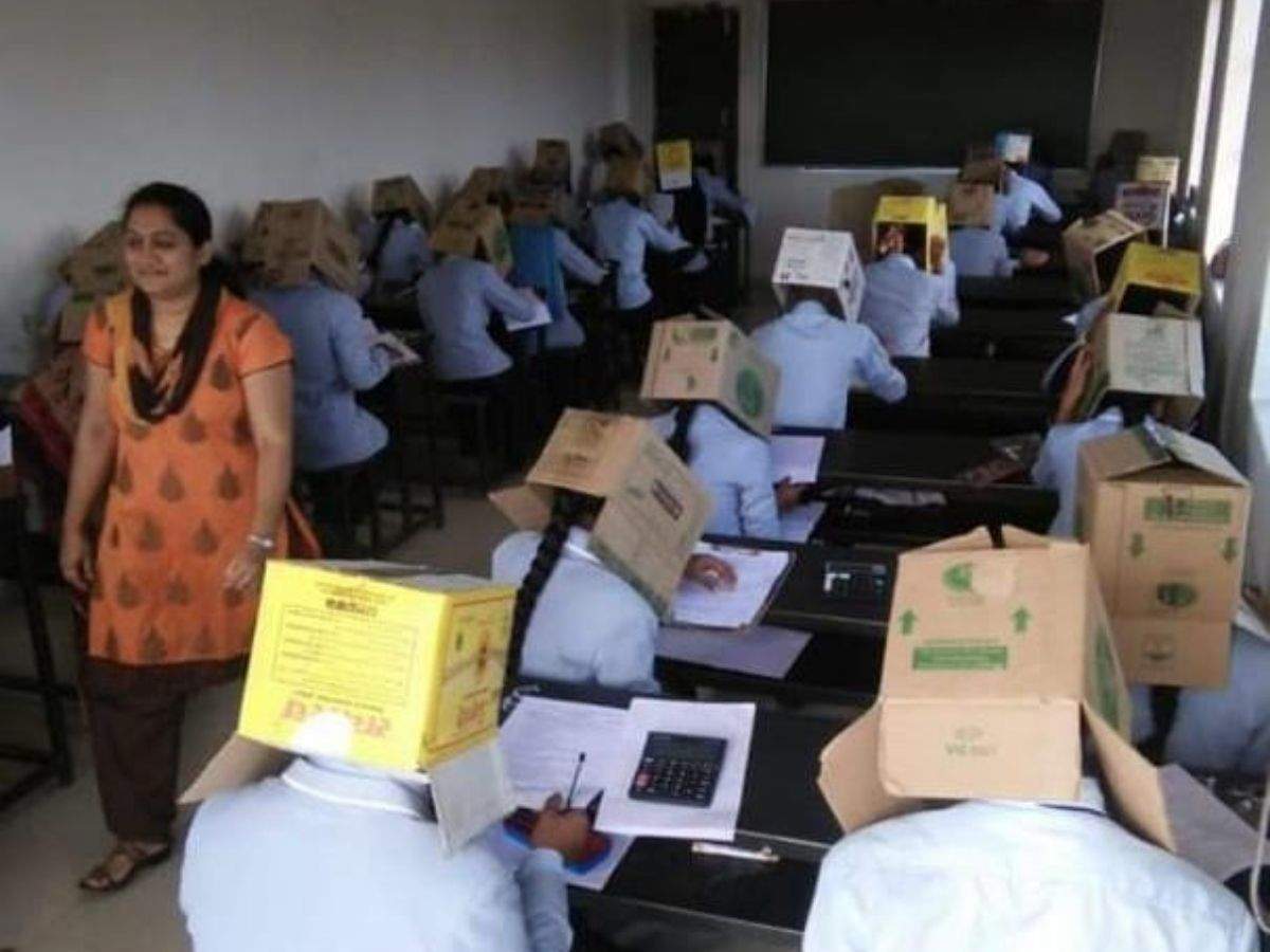 Руководство колледжа Бхагат, расположенного в городе Хавери, штат Карнатака на юго-западе Индии, извинилось перед окружным начальством за то, что заставило учащихся сдавать экзамен по химии с картонными коробками на головах – чтобы лишить их возможности списывать.