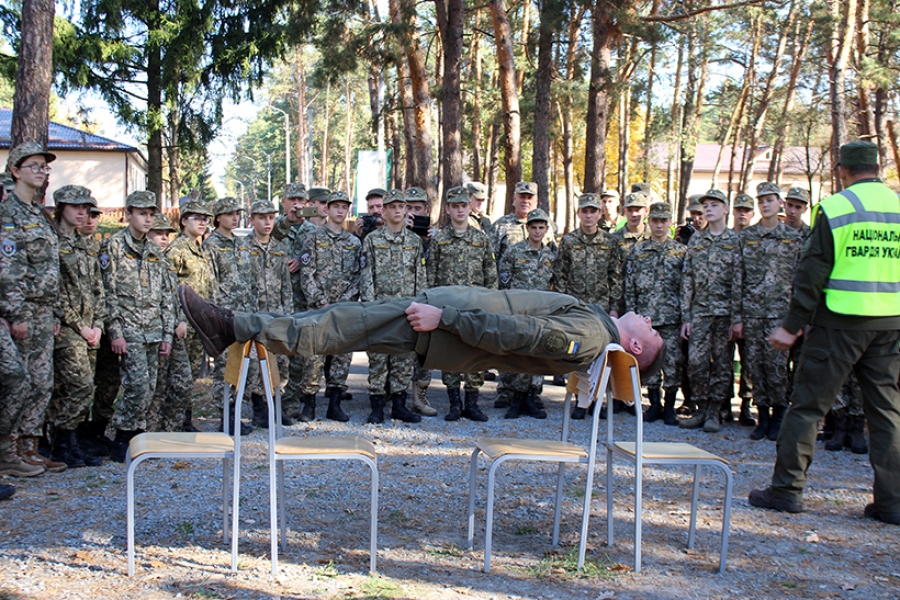 Одним з місць, яке найбільше зацікавило школярів, стало тренування, під керівництвом вченого Національної академії Національної гвардії полковника Олександра Черкашина. Використовуючи психологічні методи впливу він вводив особу у стан гіпнозу. Головною метою даної вправи є фізичне та психологічне концентрування військовослужбовця під час виконання обов’язків методом аутотренінгу.