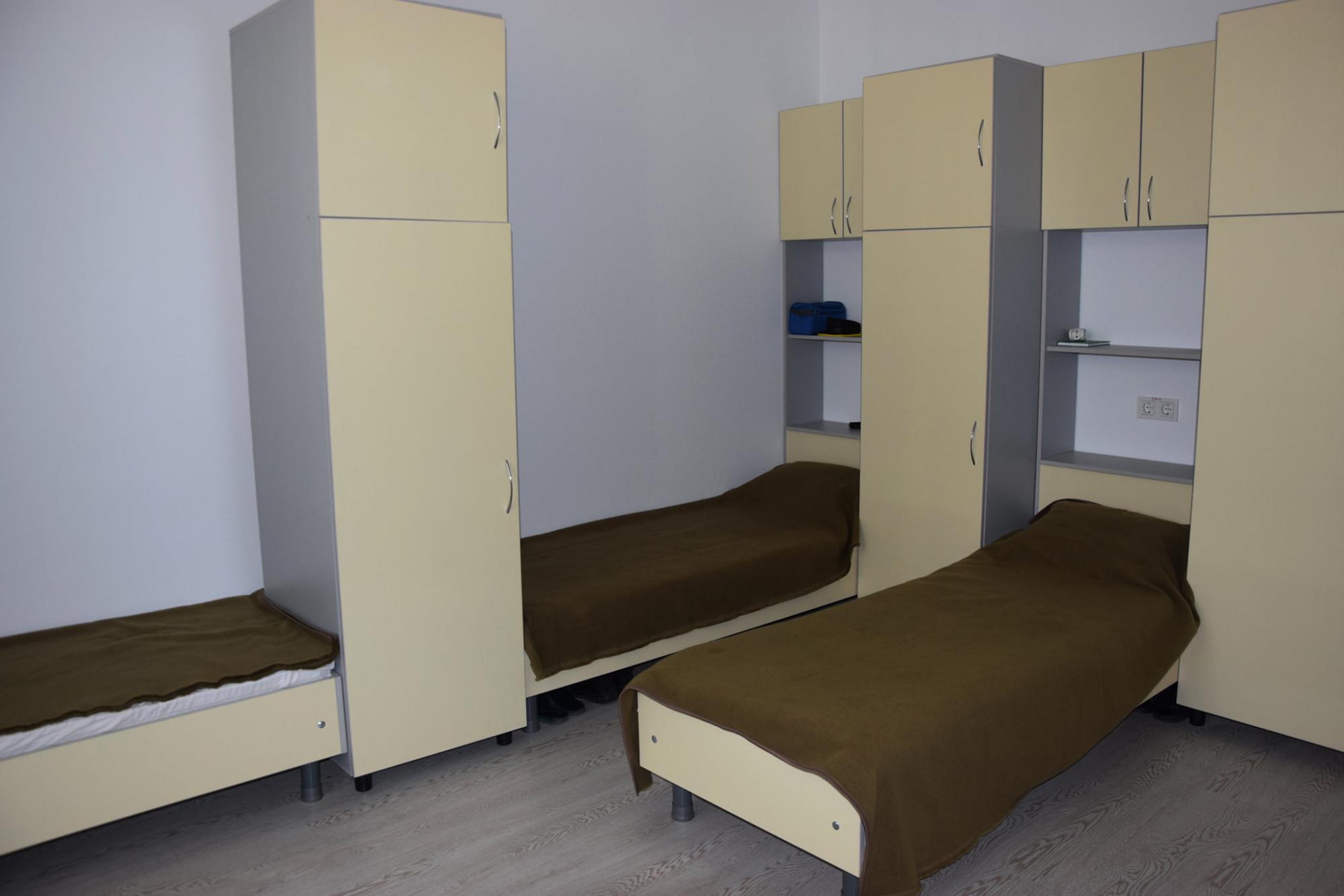 Кімнати обладнані новими меблями, побутовою технікою та сантехнічним обладнанням. На кожному поверсі розташована загальна кухня. В кімнатах є все необхідне, що потрібно для комфортного проживання військовослужбовців.
