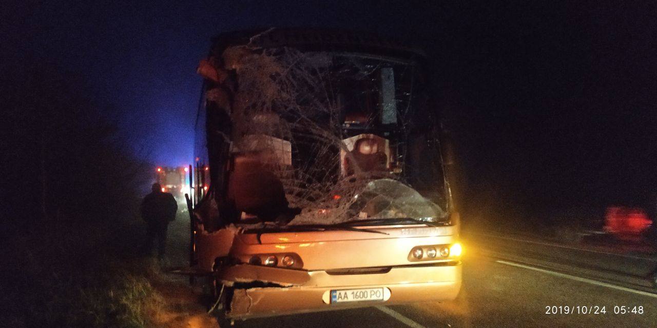 24 октября в 3:25 на автодороге Киев-Варшава, вблизи с. Федоровка Сарненского района произошло ДТП с участием автобуса Неоплан, который двигался из Киева в Варшаву, и грузового автомобиля.