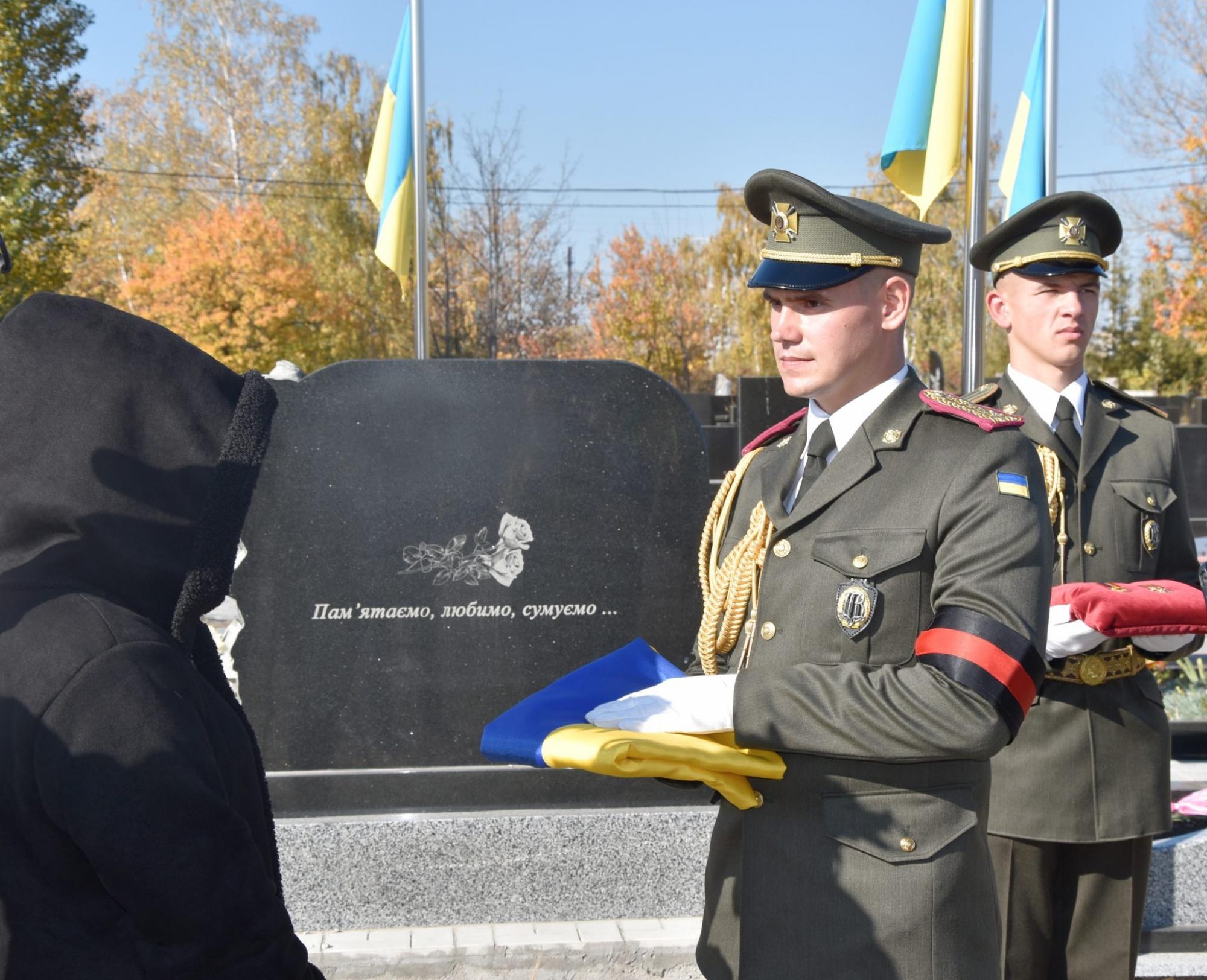Державний Прапор офіцер-розпорядник відповідним чином складає і передає родичам загиблого зі словами: «Від імені Президента України, Верховного головнокомандувача Збройних Сил України, прийміть цей Прапор як символ держави, якій вірно й до кінця служив Ваш чоловік (син, батько, донька, дружина)».