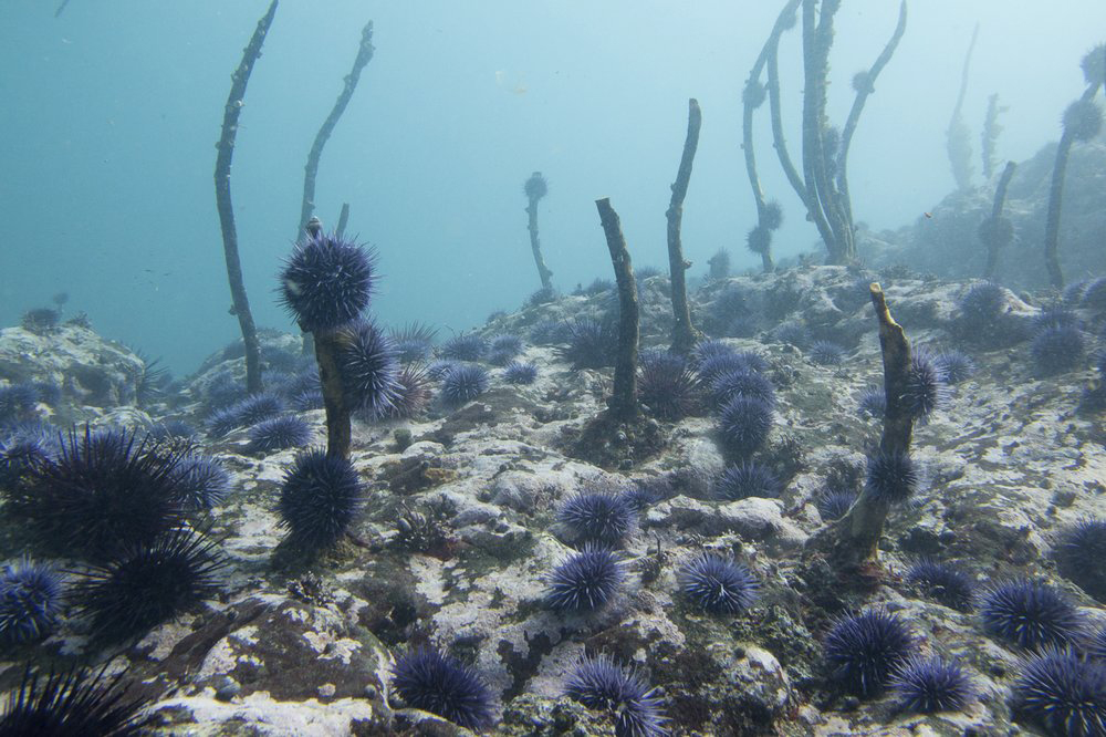 Тихоокеанское побережье США, от Калифорнии до Орегона, переживает невиданное ранее бедствие — нашествие пурпурного стронгилоцентротуса (Strongylocentrotus purpuratus). Ежи в последние годы необычно обильно размножились, так что их естественные враги — морские звезды — за этим эволюционным успехом не успели. Теперь пурпурные ежи медленно ползают по опустевшему дну и пытаются найти себе еду.