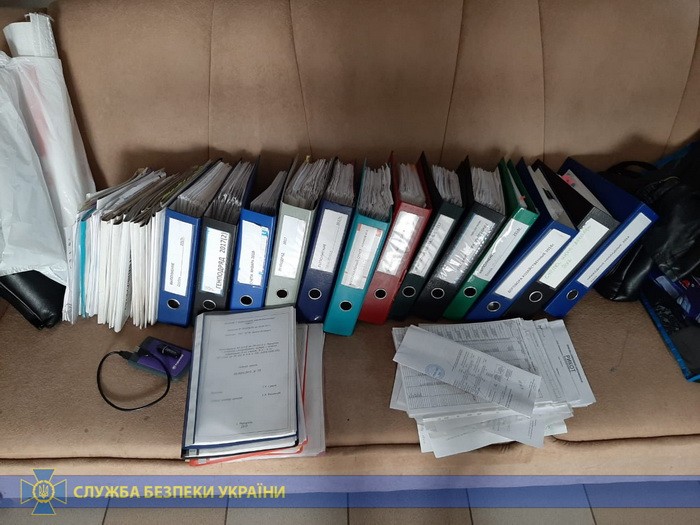 Під час обшуків у Києві в офісах та за місцем проживання керівників фірм виявлено банківські картки, фінансово-господарські документи та чорнові записи, печатки задіяних в оборудці фірм, які підтверджують противоправну діяльність.