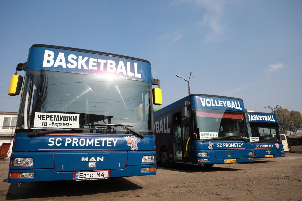 Инициатором проекта выступил президент СК "Прометей" Владимир Дубинский. На трех комфортабельных автобусах, разрисованных в клубные цвета и с эмблемой "Прометей" можно без проблем добраться на игру, а затем вернуться после ее окончания домой.