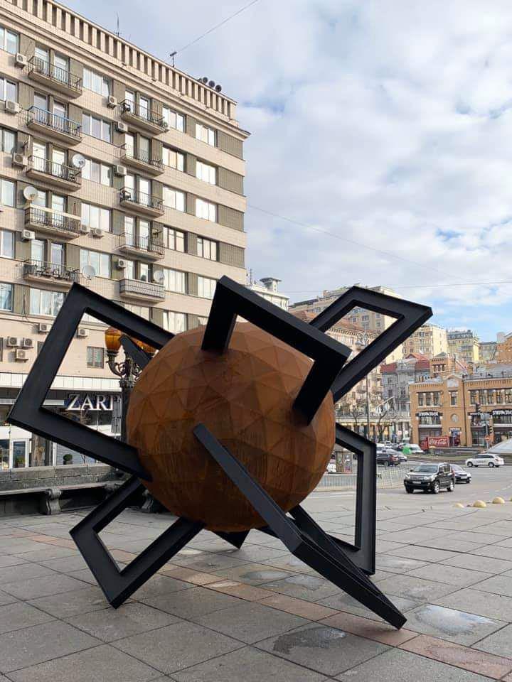 Ранее на этом месте стояла синяя рука, которая, по замыслу авторов, символизировала дружбу народов. Эта скульптура украшает разные города временно – впоследствии рука поехала в Николаев. После того возле пустого постамента, на котором когда-то стоял Ленин, устанавливали трехметровую ледяную рысь. Скульптура, исчезающая на глазах, символизировала быстрое вымирание хищных зверей.