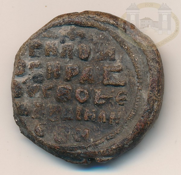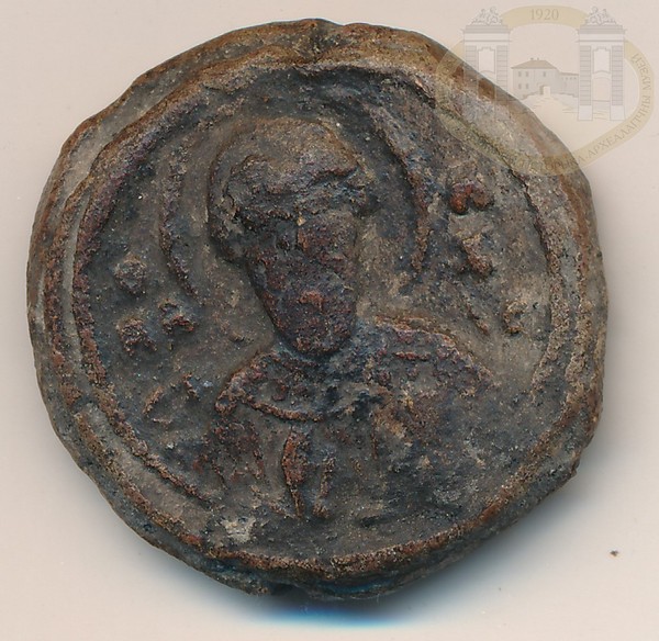 Владимир Мономах — отец гродненской княжны Агафьи, которая вышла замуж за местного князя Всеволода Давыдовича. На одной стороне печати можно увидеть изображение Василия Кесарийского, небесного покровителя Мономаха, на другой — надпись на древнерусском языке с просьбой о божьей помощи.
