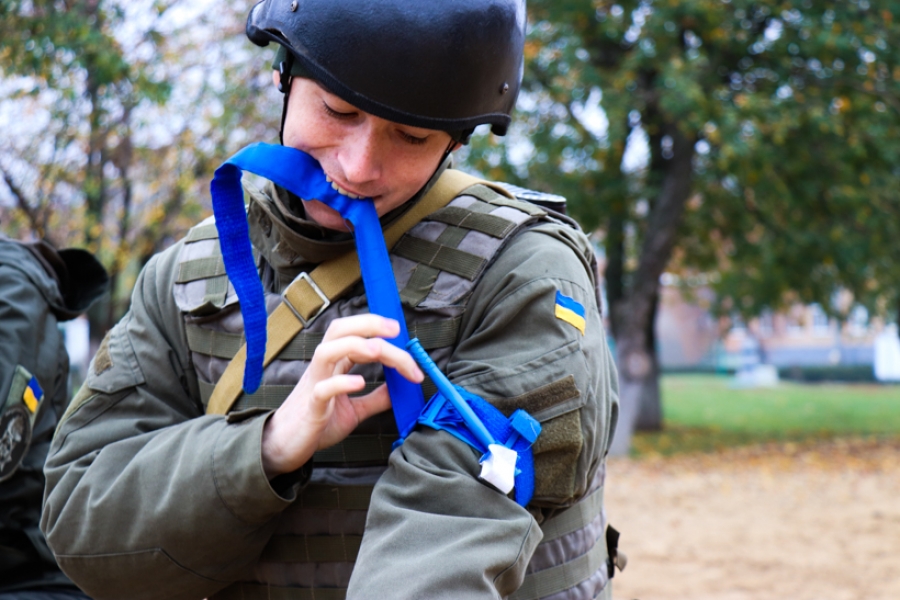 «На заняттях з тактичної медицини ми відпрацьовуємо надання першої домедичної допомоги пораненим військовослужбовцям на полі бою, також гвардійці навчаються азам самодопомоги у разі поранення. Правильне накладання турнікету на кінцівки при масивних кровотечах, забезпечення прохідності дихальних шляхів, огляд грудної клітини на проникаючі поранення, переміщення пораненого з зони під вогнем в зону укриття. Всі ці знання для військовослужбовця є необхідними. Об’єм нової інформації для бійців дійсно великий, але викладається поступово, і всі вправи відпрацьовуються практично», – розповів старший інструктор з бойової підготовки військової частини 3017 старшина Максим Кіріченко.