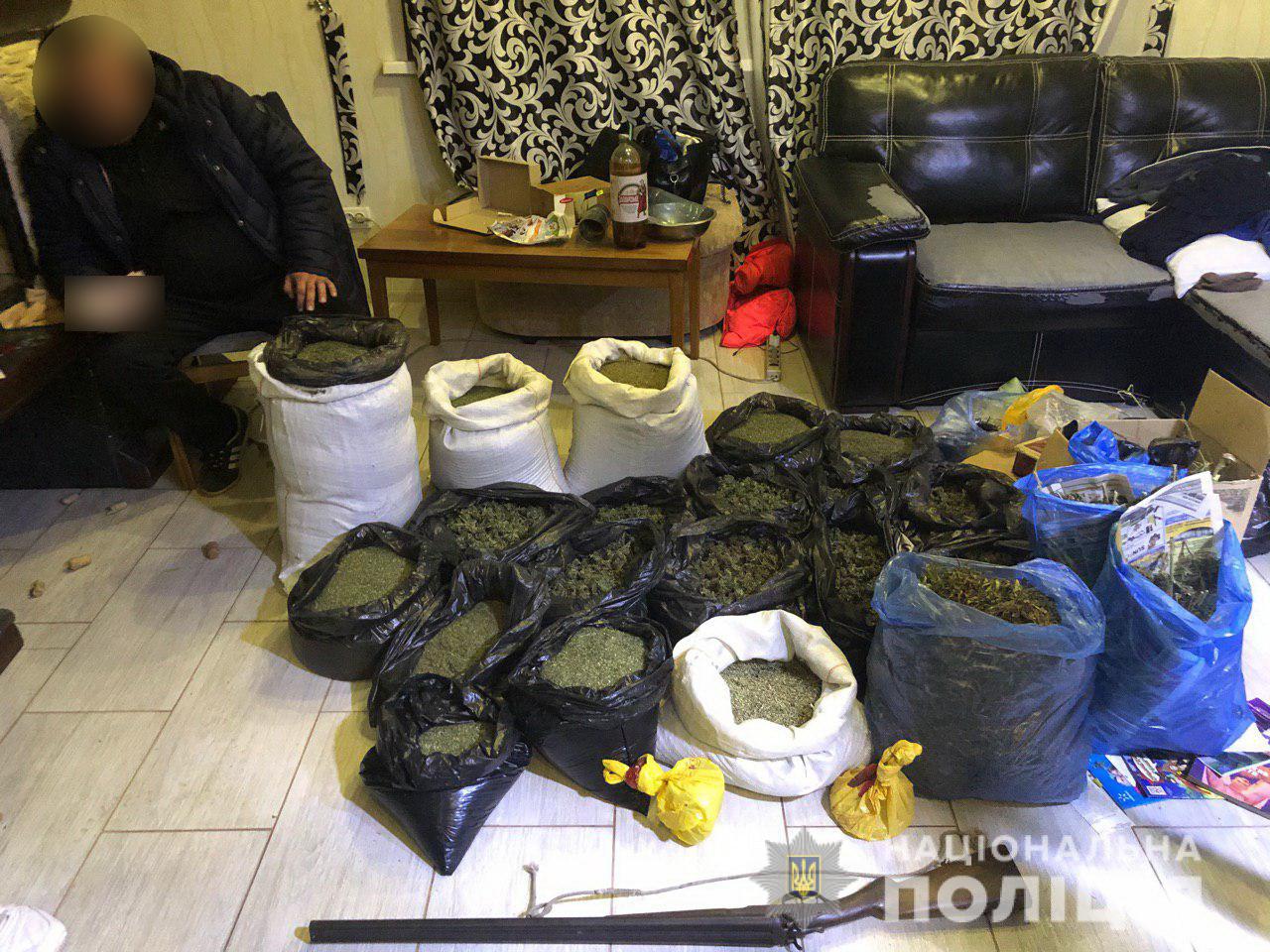 За місцем мешкання колишнього працівника органів внутрішніх справ вилучено понад 40 кілограмів коноплі, а також зброю і боєприпаси. За оцінками фахівців «ринкова» вартість вилученого наркотичного зілля становить понад один мільйон гривень.