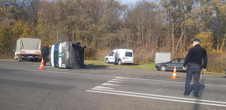 На трассе Киев-Чоп в селе Гамалеевка Пустомытовского района произошло ДТП между автомобилем Volkswagen Caddy и микроавтобусом Ford Transit 350 - служебным авто инкассаторов "Ощадбанка".