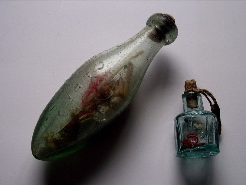 В английском городе Уотфорд, в 24 километрах к северо-западу от Лондона, при сносе здания старого паба в каминной трубе был обнаружен стеклянный пузырек, заполненный рыболовными крючками, человеческими зубами, осколками стекла и неизвестной жидкостью. Специалисты по фольклору рассказали, что такие сосуды использовались в качестве средства, отвращающего ведьм, пишет smithsonianmag.