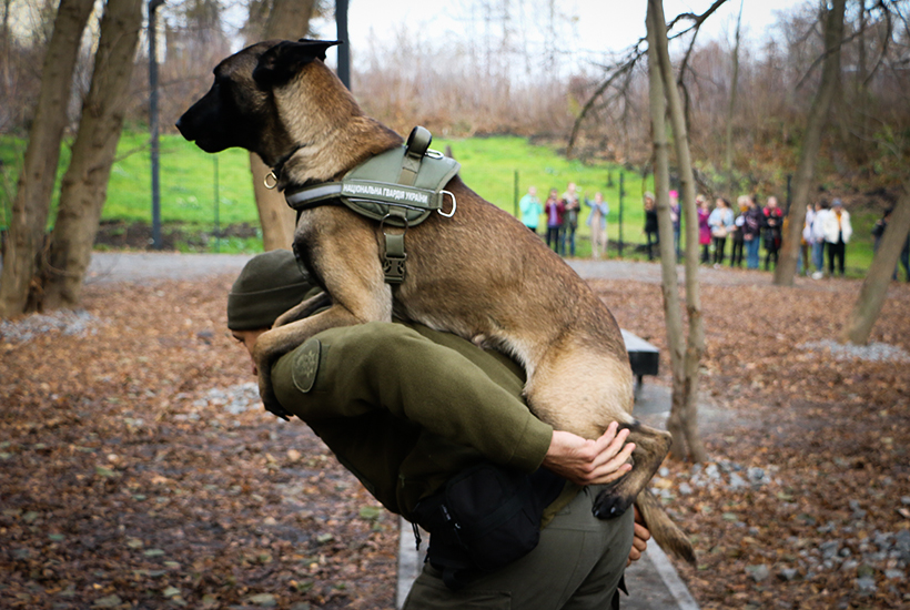 «Наші службові собаки – дуже цінні помічники. Вони постійно допомагають нам під час заходів з охорони громадського порядку. Кінологи Нацгвардії також постійно працюють в районі проведення операції Об’єднаних сил – шукають зброю, боєприпаси, наркотики», – розповів начальник кінологічної служби військової частини 3005 Анатолій Сабодаш
