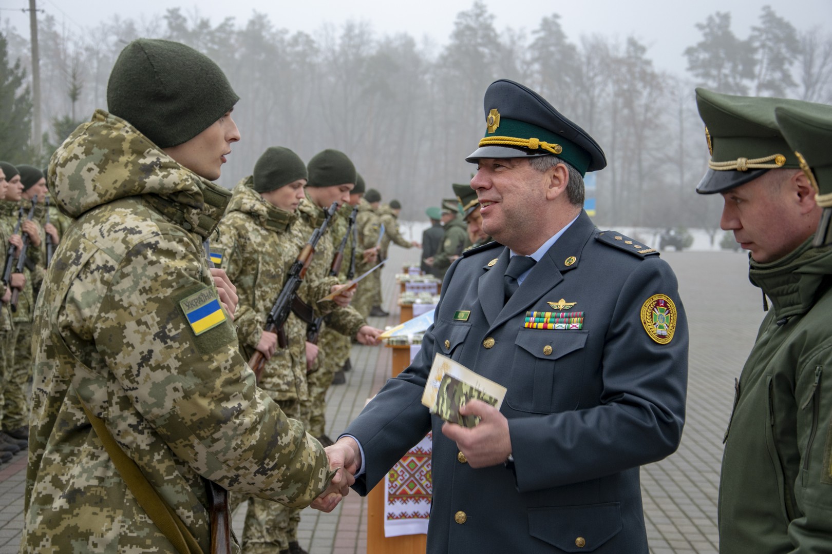 У вітальній промові заступник директора департаменту-начальник управління професійної підготовки та організації освітньої діяльності полковник Олег Фігура привітав молодих прикордонників та зазначив, що Військова присяга – це особливий, надзвичайно відповідальний та хвилюючий момент у житті кожного військовослужбовця, а Клятва вірності своїй Батьківщині споконвічно була і залишиться непорушним словом. «Впевнений, що кожний з вас буде сумлінно виконувати свій службовий обов’язок в ім’я збереження добра, миру та спокою в Україні. Саме вам, продовжувати славні традиції прикордонного відомства, охорону державних рубежів та спокій українського народу, бути надійною опорою у розбудові незалежної Української держави. Тож здоров’я, сил та натхнення вам, будьте завжди вірними народу України та словам військової присяги», – додав Олег Фігура.