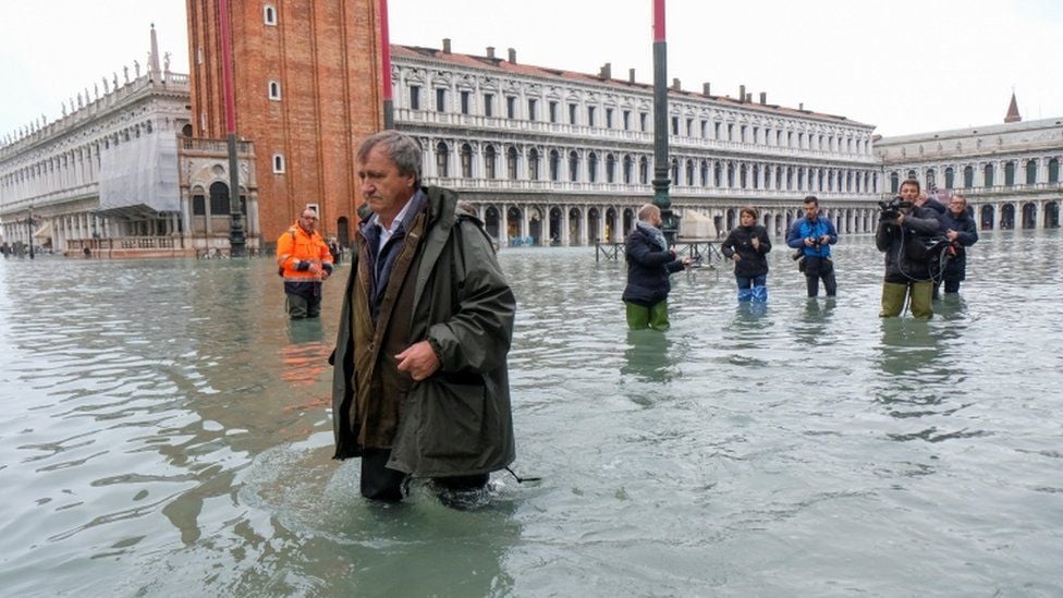 Венеция почти полностью затоплена вследствие того, что уровень воды в Венецианской лагуне поднялся на 1,87 метра. Это связано с сильными продолжительными дождями, сообщает ВВС.