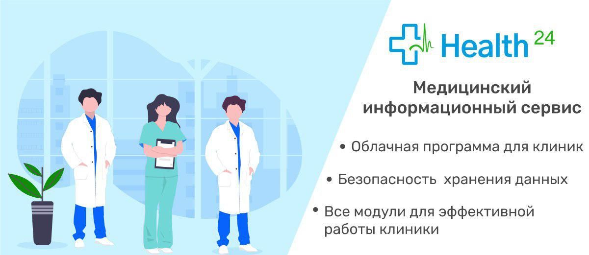 Health24 - полнофункциональная облачная медицинская информационная система, объединяющая в себе функциональные сервисы, которые обеспечивают работу врача и медицинского учреждения в соответствии с существующими стандартами медицинского документооборота.