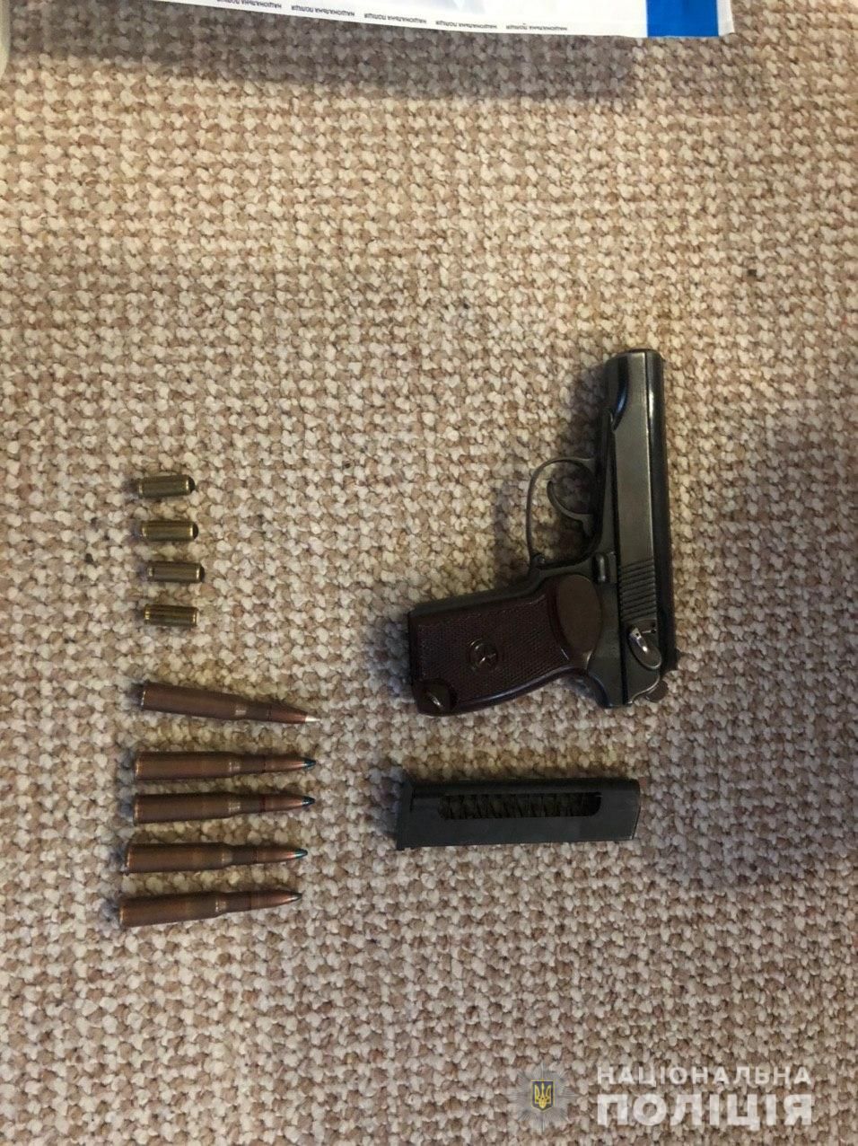 Наразі за місцем проживання зловмисників тривають обшуки. Там поліція виявила та вилучила пістолети, ножі, боєприпаси, інші речові докази, які вказують на їхню причетність до злочину.