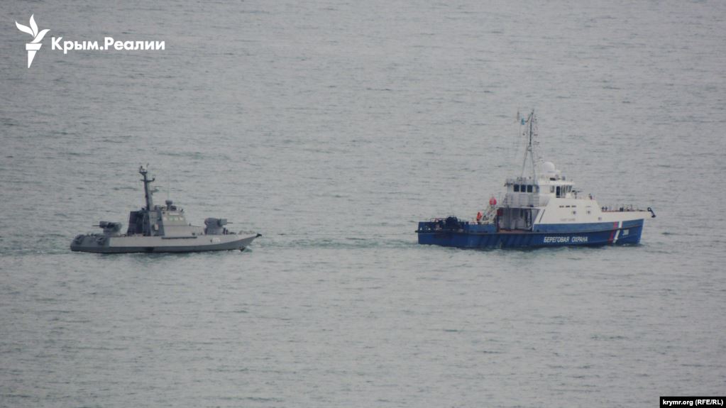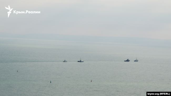Как сообщает Крым.Реалии, катера в сопровождении российских кораблей следуют Керченским проливом в сторону Черного моря.