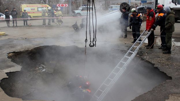 Ссылаясь на сообщения очевидцев в соцсетях, агентство пишет, что в этом месте проходят тепловые сети, автомобиль провалился в яму с кипятком.