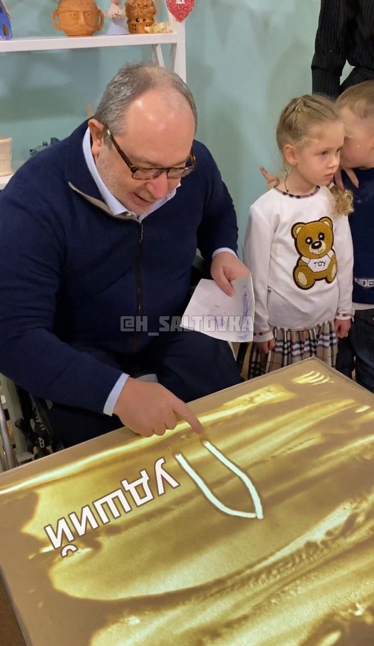 "Кружок рисования песком в детском клубе «Высота». Не удержался…", - написал он.