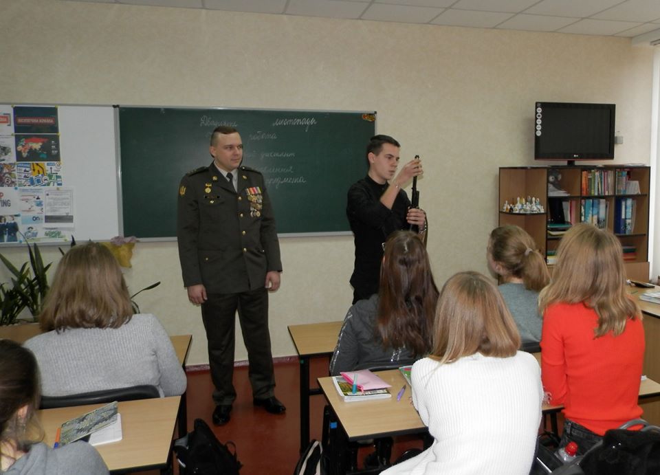 «В нас довго не було викладача з предмету «Захист Вітчизни», тому його проводили або вчителі з фізичного виховання, або трудового навчання. Нещодавно нам вдалося знайти вчителя з цього предмету, полковника в запасі. Відтоді рівень викладання значно зріс. І я дуже вдячна, що ви знайшли час і зацікавили наших дітей. Це їм дуже потрібно», зауважила Наталія Григорівна.