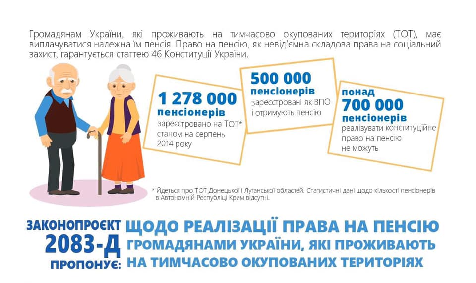 60% людей пересекающих линию разграничения – это пенсионеры. Они живут в постоянной борьбе за выплаты и документы. Так не должно быть! 700 тысяч пенсионеров на неподконтрольной территории не могут реализовать свое конституционное право на пенсию. Это ненормально!Вопрос «на вчера» и его надо решать.