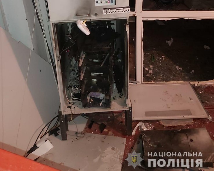 При осмотре специалисты установили, что неизвестные взорвали банкомат и совершили кражу четырех кассет с деньгами.