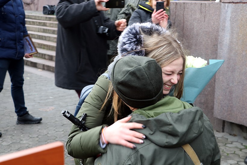 В Харькове ритуал принятия присяги провели на одной из центральных площадей города. Поздравить молодых ребят приехали не только их близкие, но и вовсе незнакомые - простые харьковчане.