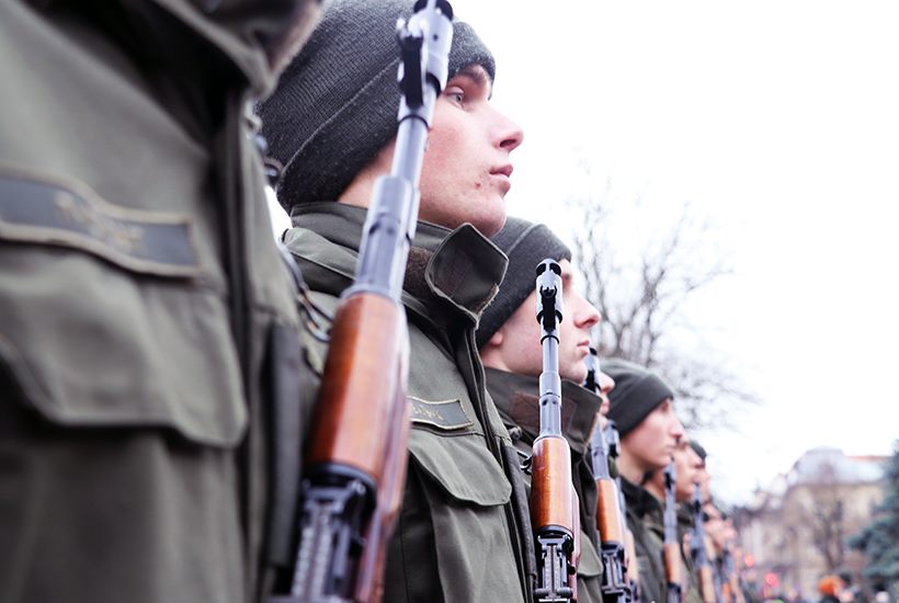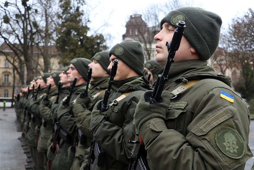 Впервые перед главным корпусом университета им. Ивана Франко нацгвардейцы присягнули на верность украинскому народу. Более сотни тщательно отобранных представителями НГУ срочников и военнослужащих по контракту торжественно присягнули стоять на защите граждан и государства.