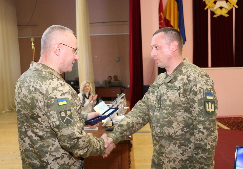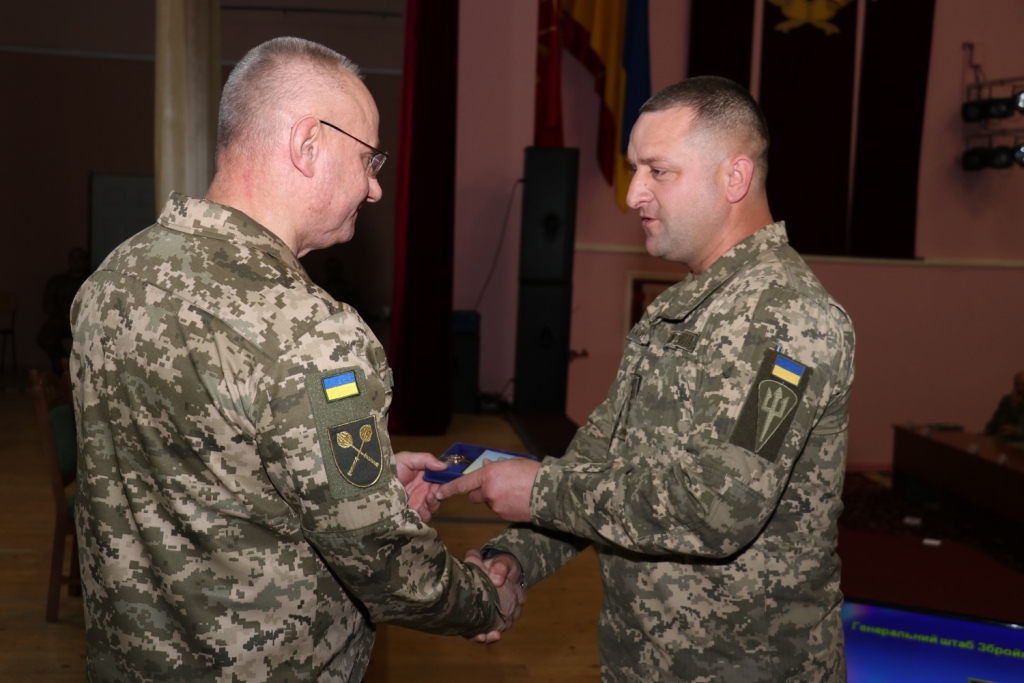 В свою очередь заместитель министра обороны Алина Фролова за значительный личный вклад в дело укрепления обороноспособности государства, поддержания высокой боевой готовности войск (сил), высокие личные достижения в служебной деятельности, образцовое выполнение воинского долга и по итогам служебной деятельности в 2019 году наградила от имени министра обороны представителей ВСУ денежными премиями, ценными подарками и зачитала приказ о присвоении досрочно очередного воинского звания полковнику командиру 24-й отдельной механизированной бригады оперативного командования "Запад" Сухопутных войск ВСУ Валерию Гудзю.