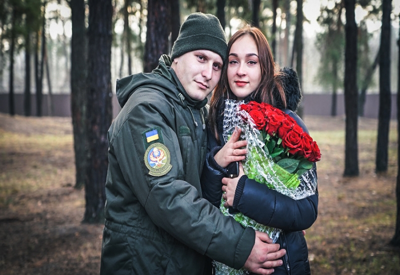 Молодой солдат Виталий Харченко из Международного центра Нацгвардии под Киевом, тоже сделал важный шаг в своей жизни - признался в любви своей девушке Оксане.