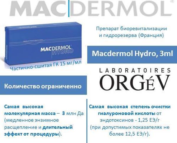 MACDERMOL полностью натуральный и биосовместимый. Запатентованная технология, применяемая в MACDERMOL позволяет безопасно обеспечивать высокую степень удержания влаги, улучшенный синтез коллагена и лучшую устойчивость к ферментативной, окислительной, термической и механической деградации. Результатом является значительное и длительное создание объема, а также полная нетоксичность и биосовместимость для максимального комфорта пациента.