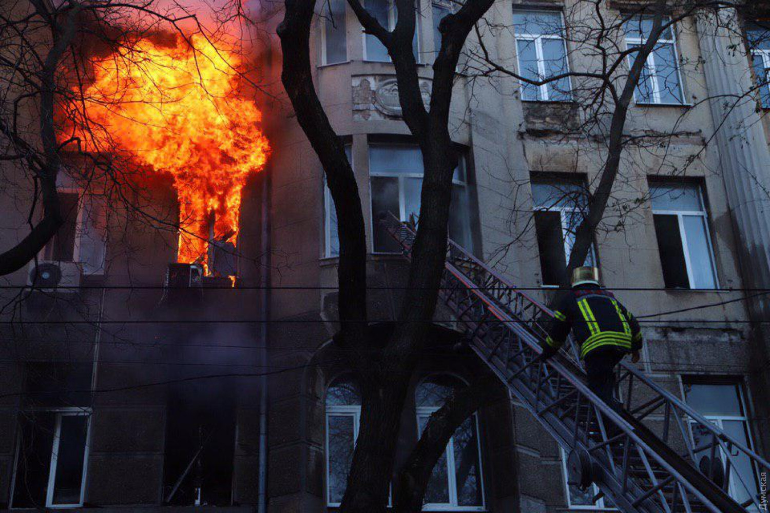 4 декабря в 10:12 в Одесском колледже экономики, права и гостинично-ресторанного бизнеса на 3 этаже 6-ти этажного учебного корпуса возник пожар.