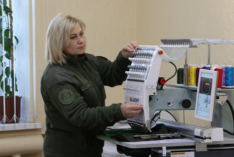 Гвардейцы Слобожанской бригады решили попробовать изготавливать шевроны самостоятельно. Оператор «умной» швейной машины - начальник мастерской ремонта вещевого имущества Инга Педь, поэтому нагрузка на других представителей персонала мастерской не возросло.