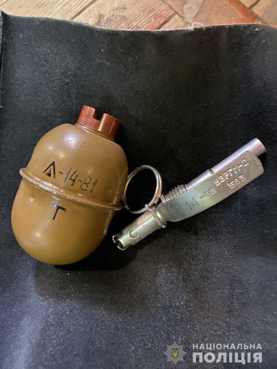 З оселі 28-річного чоловіка вилучені набої калібром 9 мм, граната «РГД-5» з запалом, мобільні телефони та стартові пакети мобільних операторів різних країн.