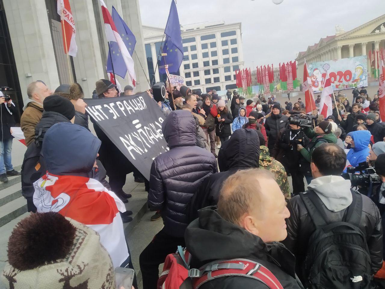 В центре Минска прошла акция против "углубленной интеграции" Беларуси и России.