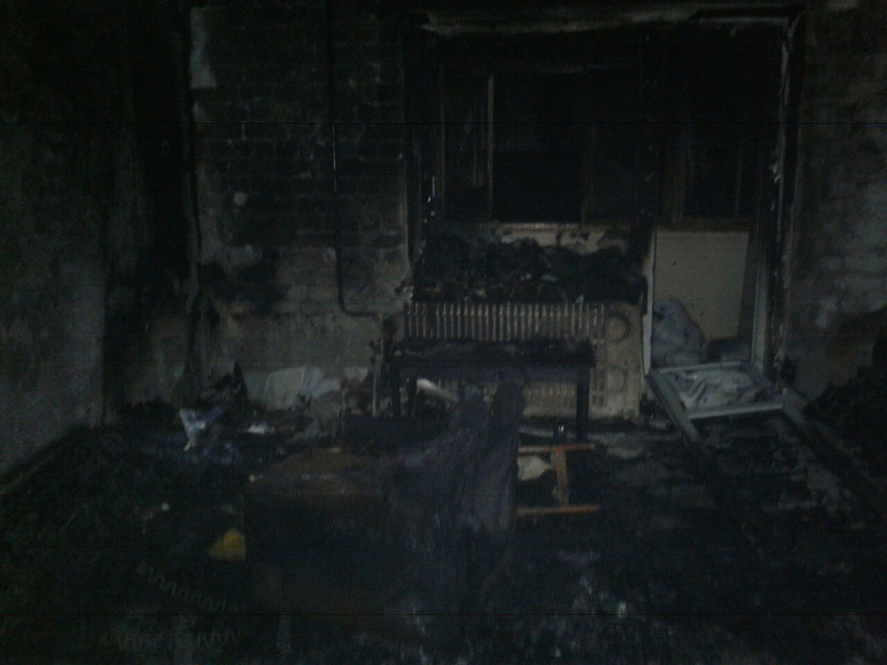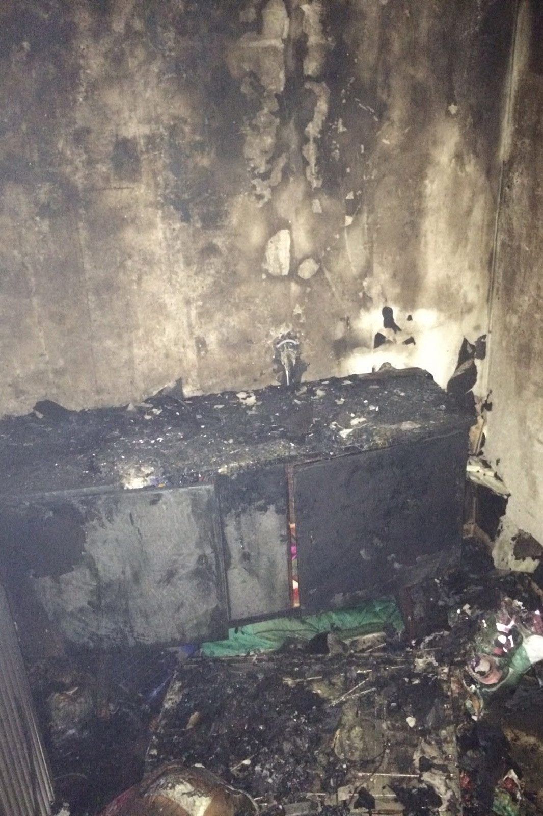 На момент прибытия спасателей в комнате квартиры на 4-м этаже горели домашние вещи на площади около 10 кв.м.