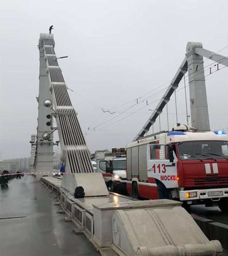 Неизвестный мужчина забрался на пилон Крымского моста в Москве и угрожал, что спрыгнет с него, пишут местные СМИ.