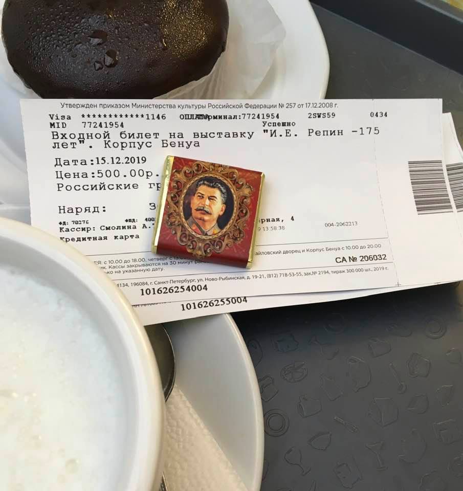 В Русском музее отреагировали на распространившуюся в соцсетях информацию о том, что в кафетерии учреждения указанного российского учреждения культуры в дополнение к чашке кофе выдают шоколадку с портретом Сталина.