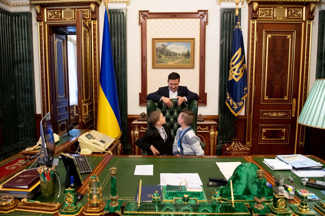 Президент пригласил детей в свой кабинет, чтобы показать, где и как он работает. Особенно ребят заинтересовало кресло Главы государства. Дети расспрашивали Владимира Зеленского о его опыте съемок в фильмах, а также о том, трудно ли управлять страной.