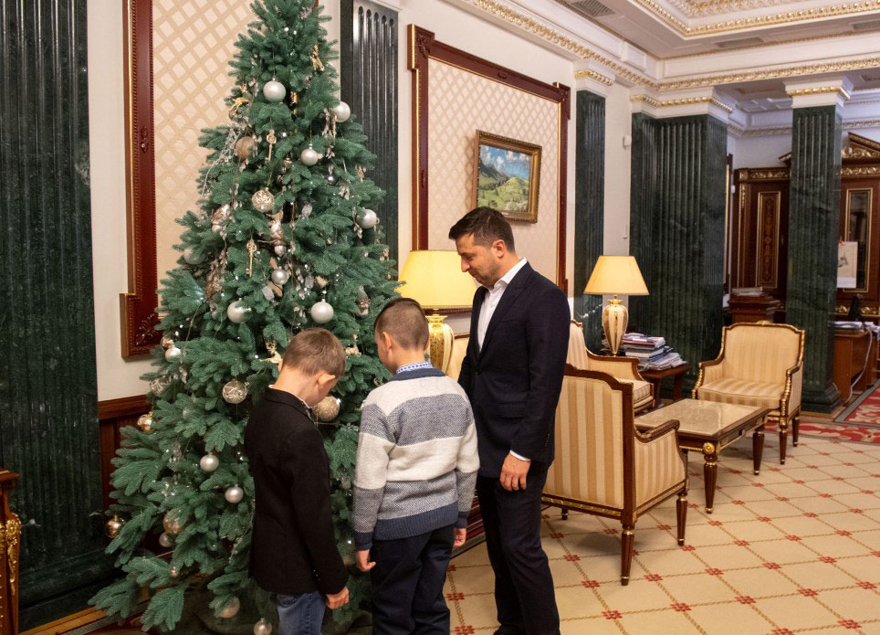В День святого Николая Президент Владимир Зеленский пригласил на чаепитие в свой кабинет двух детей – Артема Кирилюка и Никиту Баулу, родители которых погибли в ходе боевых действий на Донбассе.