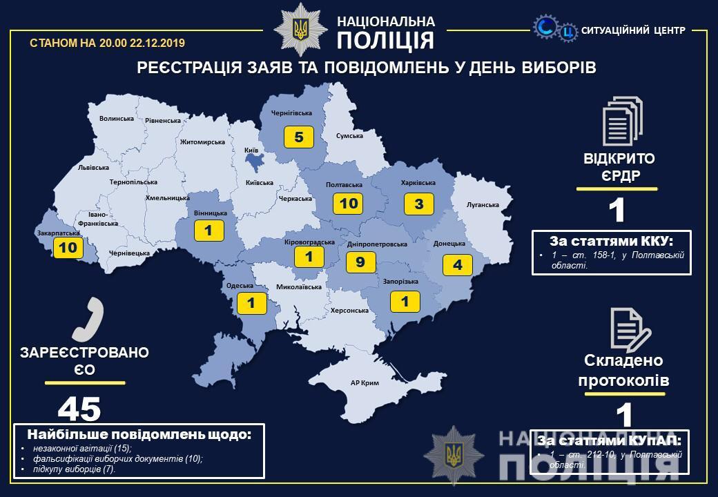 Всего в день голосования в полицию поступило 45 сообщений о нарушении избирательного законодательства.