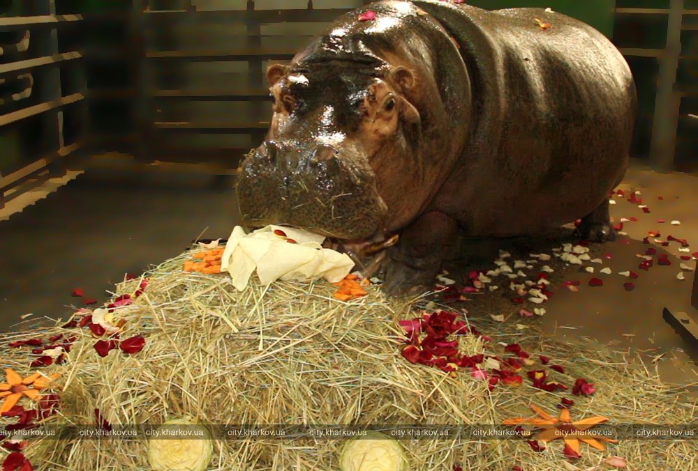 27-й день рождения бегемотихи Степаниды отметили в Харьковском зоопарке.