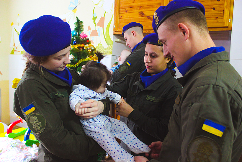 Також курсанти гуманітарного факультету Академії відвідали Обласний спеціалізований будинок дитини «Гіппократ». Гвардійці привітали малят з прийдешніми святами та подарували засоби для підвищення вологості повітря в приміщеннях.