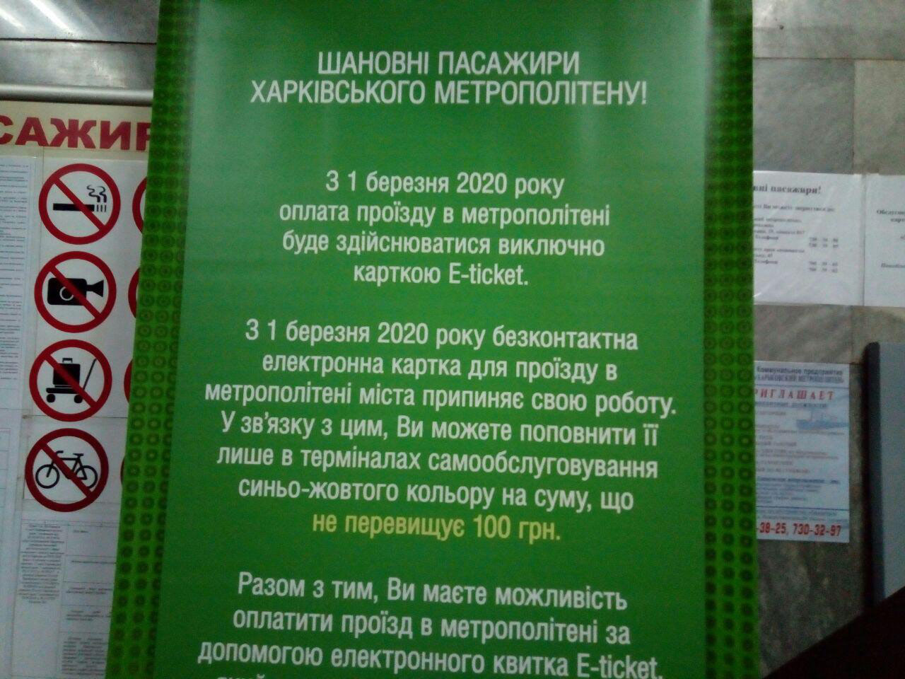 Соответствующие объявления появились накануне на станциях харьковского метрополитена.