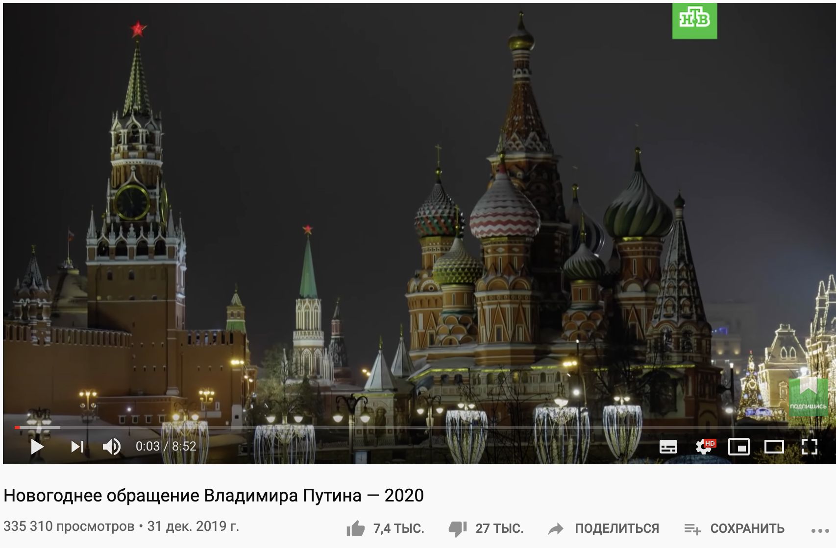 На других каналах счетчик оставили открытым. Так, на момент написания заметки на YouTube-канале НТВ под обращением Путина было 27 тысяч дизлайков и 7,4 тысяч лайков.