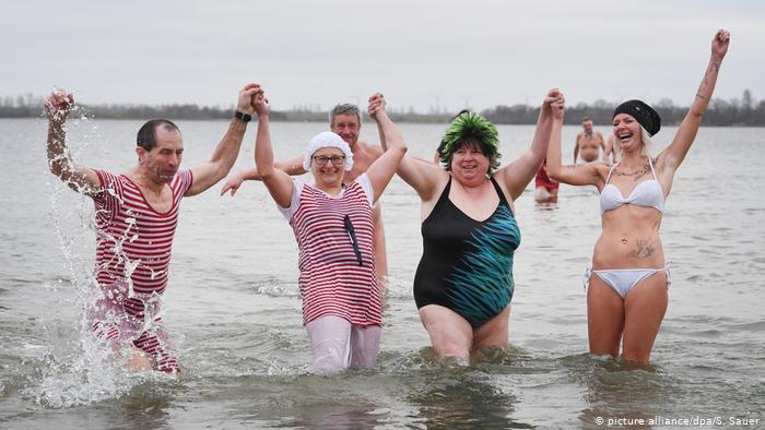 Символическое открытие купального сезона в наступившем году выглядело как карнавал моржей и доставило участникам массу удовольствия, отмечает DW.