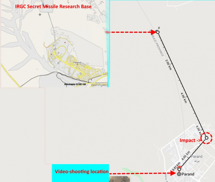 "Используя визуально воспринимаемую скорость движения ракеты относительно фактически известной скорости Тор-М, я смог вычислить угол относительно траектории. Это расстояние от места запуска составляло около 6,5 км. Один кандидат: секретная база IRSG", - написал он.