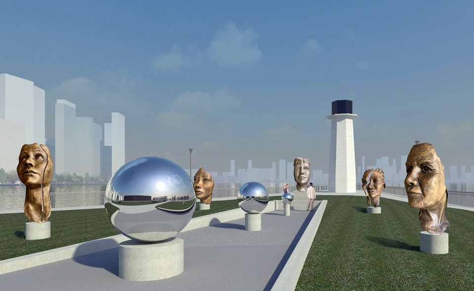 Дизайн монумента, посвященного журналистке XIX века, разработала Аманда Мэтьюз, скульптор и совладелица студии Prometheus Art, занимающейся созданием статуй из металла. Комплекс будет состоять из двухметровой скульптуры в виде головы Нелли Блай и ведущей к ней дорожки с зеркальными сферами, пишет birdinflight. По бокам от дорожки будут установлены еще четыре скульптурные женские головы с расщелинами. Как отмечает автор работы, эти четыре головы не являются аллюзией на жизнь Блай: это скульптуры, при создании которых Аманда Мэтьюз использовала образы знакомых женщин разных рас и возрастов, чтобы подчеркнуть разнообразие и репрезентацию.