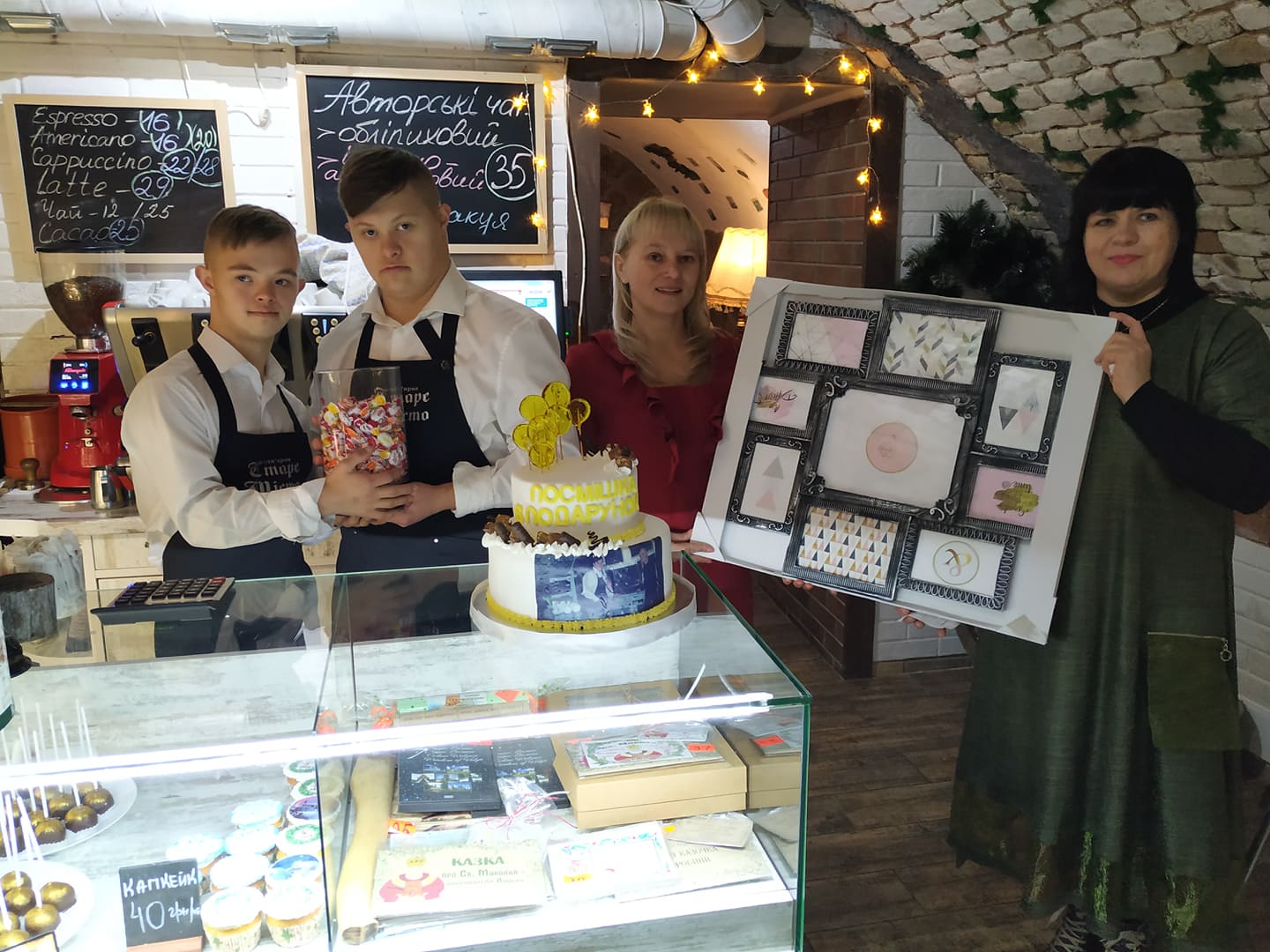 В Луцке открылась кофейня Старый город, где официантами работают два парня с синдромом Дауна. По словам владелиц, такое заведение является первым в Украине.