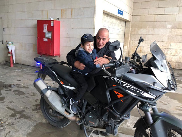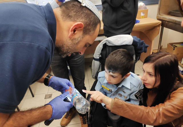 На Даника надели детскую полицейскую форму и повезли на улицу. Здесь стоит отметить, что Даниэль - не обычный ребенок, у него ДЦП, и передвигается он в инвалидной коляске. Семья репатриировалась несколько лет назад из Ташкента и поселилась в Ришон ле-Ционе.
